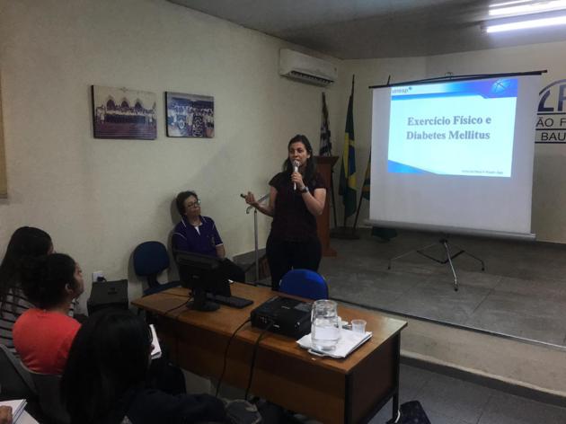No mesmo dia 08-10 à tarde, na Legião Feminina de Bauru, 130 legionárias assistiram 2 palestras sobre Diabetes- A primeira por Bruna Joaquim Carneiro Siqueira, nutricionista clínica e personal trainer na Clínica Estação Forma há 16 anos, falando sobre Nutrição: Base para o funcionamento equilibrado do organismo. A segunda foi feita pela CaL. Paula Polastri Zago, professora doutora de educação física na Unesp, que falou sobre : Exercício Físico e Diabetes Mellittus. Após houve uma dinâmica de grupo com as legionárias. Muitas dúvidas e perguntas feitas pelas legionárias.