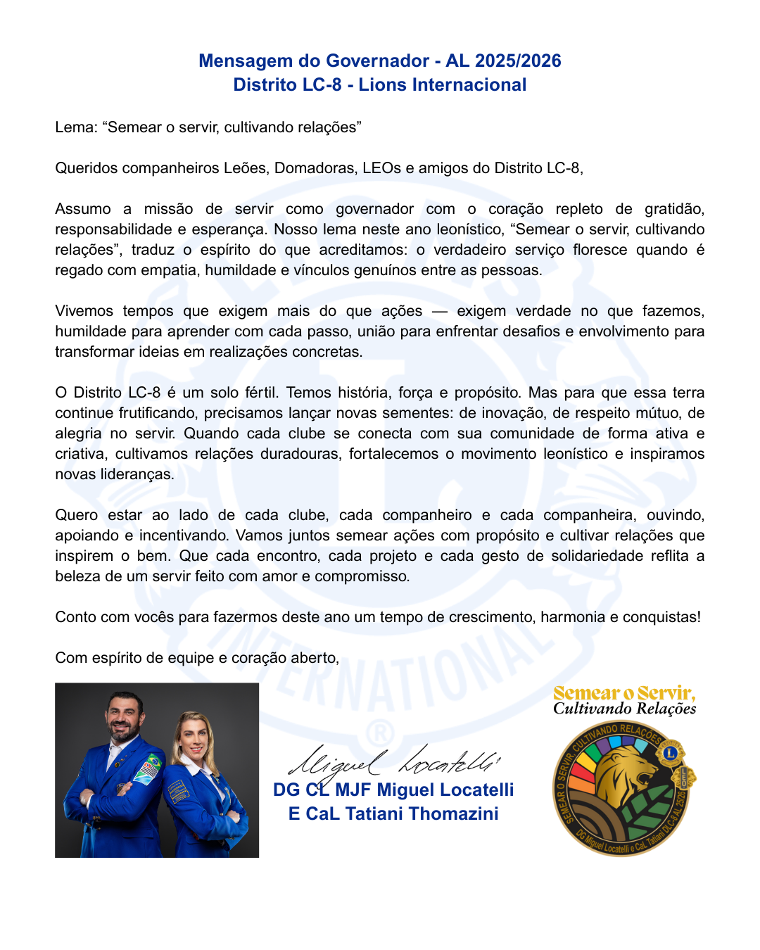 Mensagem do Govenador